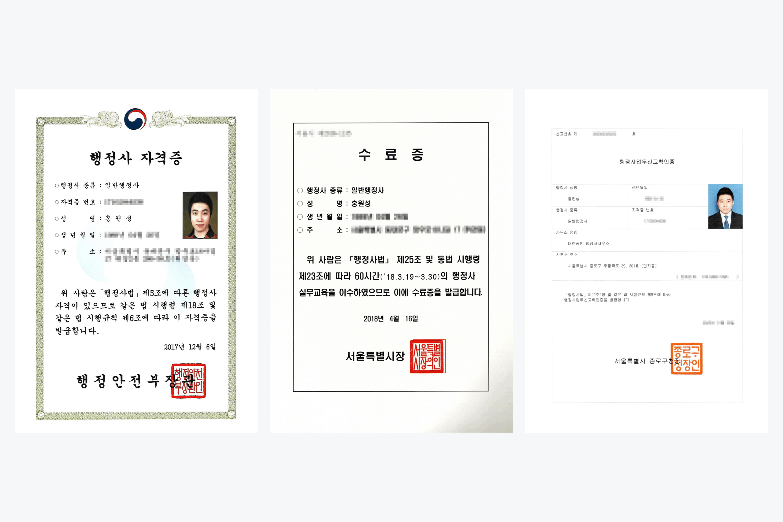 ADMINISTRATOR OFFICE 대한공인 행정사사무소 상담신청 ADMINISTRATIVE ATTORNEYS 대한공인 행정사사무소의 홈페이지에 방문해주셔서 감사드립니다. 대한공인 행정사사무소는「행정사법」에 의거하여 국가로부터 공인된 전문자격사가 운영하는 기업행정 전문 사무소로서, 기업의 탄생부터 지속적인 성장의 모든 단계를 함께하는 든든한 파트너가 되어 드리겠습니다. 무료진단 ADMINISTRATIVE WORK 대한공인 행정사사무소 기업행정분야 산업재산권 아이디어와 기술, 권리로 등록하지 않으면 자산이 아닙니다. 기업의 성장 단계에 맞춘 최적의 산업재산권 포트폴리오를 설계해드립니다. 기업인허가 단순한 서류 제출을 넘어, 각종 인증과 인허가 과정을 책임지고 수행함으로써 기업의 지위를 확보해 대외적 공신력을 세워드립니다. 공공조달 공공조달 입찰부터 계약까지 모든 과정을 책임지고 조력하여, 검증된 판로개척을 통해 기업의 비즈니스를 안정 궤도에 올려드립니다. 정부지원사업 정부지원금부터 바우처, 고용 및 수출 지원까지 까다로운 서류 장벽을 전문가가 대신 해결하여 기업이 비즈니스 확장에만 전념할 수 있는 환경을 만들어 드립니다. 이론과 실전을 겸비하여 전문적인 행정 업무를 수행합니다. 누적업무 1000 건+ 누적고객 300 명+ 업무경력(년차) 1 년차 CERTIFICATE LICENSE VISION 대한공인 행정사사무소의 약속 성과책임제도 성과가 있는 곳에 가치는 존재합니다대한공인 행정사사무소는 결과로 증명하겠습니다. 직접업무제도 영업만 하는 중개 구조가 아닌 전문자격사가 처음부터 끝까지 직접 책임지고 업무를 진행합니다. 사후관리제도 업무 처리를 넘어 비즈니스의근본적인 목표를 함께 달성해 나가는든든한 조력자가 되어드립니다. Rest assured 행정사는 대한민국 정부 행정안전부에서 관리 감독하는 국가전문자격사 입니다 안심하고 문의주세요 대표님의 비즈니스 업그레이드 하실 준비 되셨나요? 아래 필수정보를 입력해주시면, 검토 후 빠르게 연락드리겠습니다. 문의전화 : 010-9482-1095 문의메일 : 1095ws@naver.com 이 양식을 작성하려면 브라우저에서 JavaScript를 활성화하십시오.이 양식을 작성하려면 브라우저에서 JavaScript를 활성화하십시오.업종(필수) *클릭하세요제조업IT · 정보통신업도소매 · 유통업서비스 · 교육업건설업 · 디자인수출 · 수입요식업 · 생활업종예비창업자 · 재창업자기타 업종지역(필수) *클릭하세요서울경기 · 인천강원도충남 · 충북경남 · 경북전남 · 전북제주도기타 해외 등연락처(필수) *이메일(선택)문의사항(선택) 문의하기